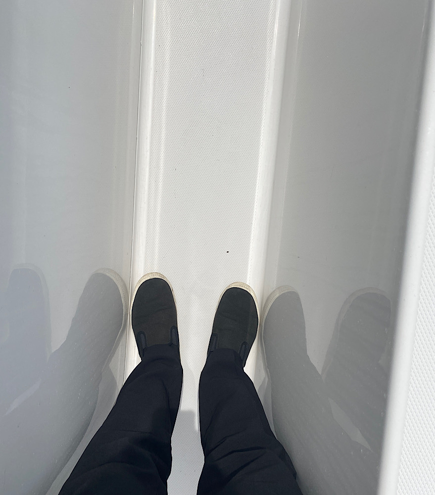 航行時にも停泊時にも移動しやすい、幅290mmのサイドウォークを確保したフルウォークアラウンド構造を採用し、ブルワークの高さも最大で680mm確保されております。