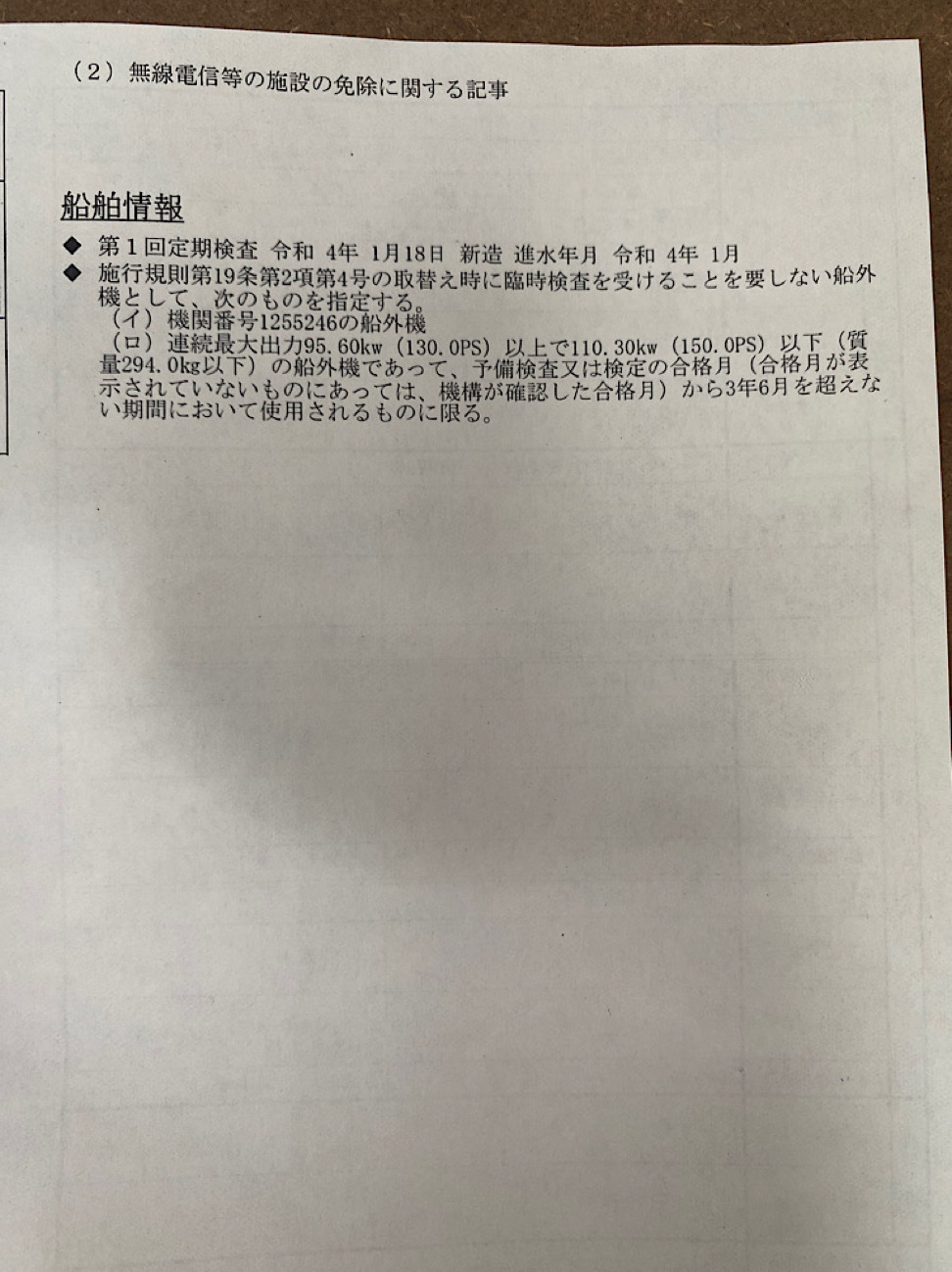 そのため船体にはトーハツの名前が入っておりますが検査手帳にはヤンマーの型式で記載されております。