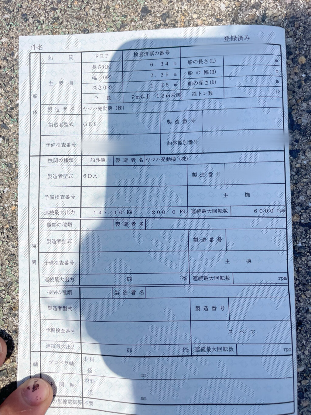 エンジン、書類関係